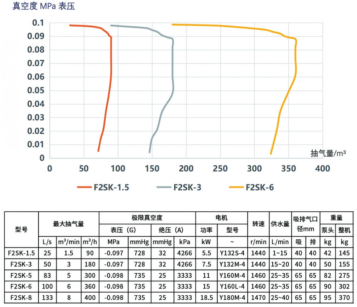 F2SK系列與FSK系列設計類似,同樣采用了徑向葉輪,它特點是增加了一個副葉輪,可以將真空度由-0.093提升到-0.098MPa。